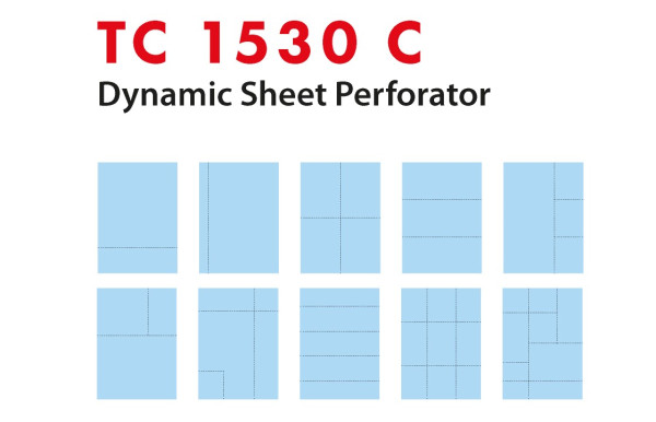 • TC 1530 C:提供动态水平与垂直打孔,适用于回执单、优惠券、易撕页;还可选配动态十字压痕与垂直压折线,简化后道折页。
